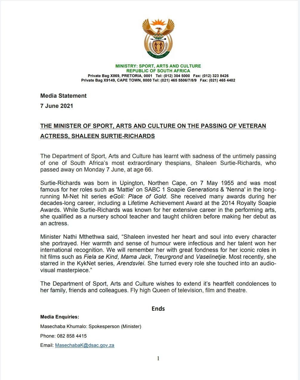 According to a report by netwerk24, the actress was found dead in a guest house in cape town on monday. She appeared in several other south african tv soaps including 7de laan, villa rosa, sabc1's generations and in 2001 she also hosted. Shaleen surtie richards has passed away. Legendary tv, film and theatre actor, shaleen surtie richards has passed away at age 66. We ask that during this time the family and friends be given an.