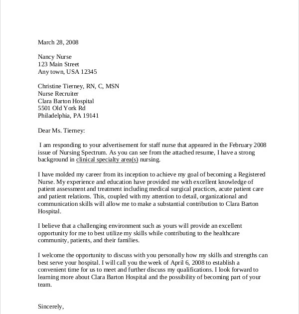 16+ Job Application Letters For Nurse - Free Sample ... from images.template.net I have been working as a nurse ever since i graduated from i am always available to answer additional questions should you have any. Dear name of head nurse, medical director, etc.: Resume cover letters for job applicants academic cover letters grant and donation request cover letters sales letters and other cover letter templates for personal and professional situations. What to include in your cover letter. When you're applying for a job, a cover letter lets you show a personal side and demonstrate why hiring you is a smart decision. This nursing resume cover letter is designed to get the reader's attention and ensure that your job application is followed up on. Depending on the company/industry, such letters can vary in the degree of. What is a job application letter?